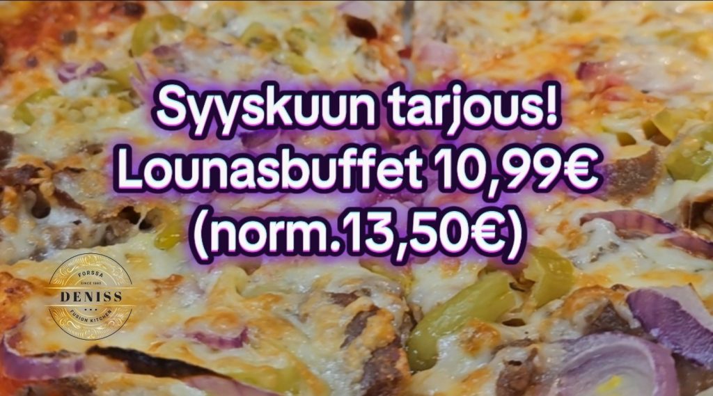 Arkisin klo 10:30 - 14:00 pizzoihin, kebabeihin ja salaatteihin sis. 0,33 l juoma.